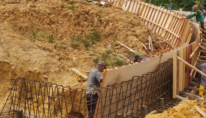 Pekerjaan ini meliputi pabrikasi pembesian talud, perangkaian besi, dan pekerjaan begesting,serta pengecoran.